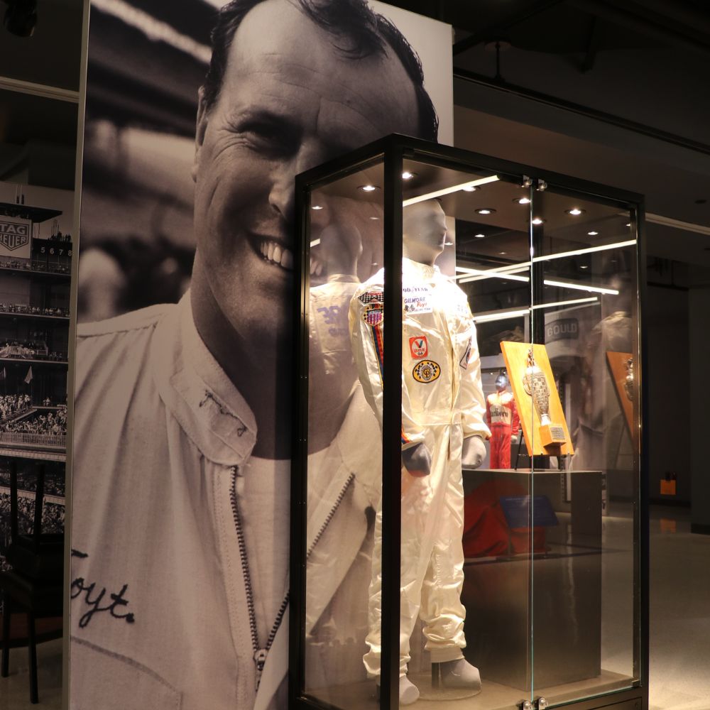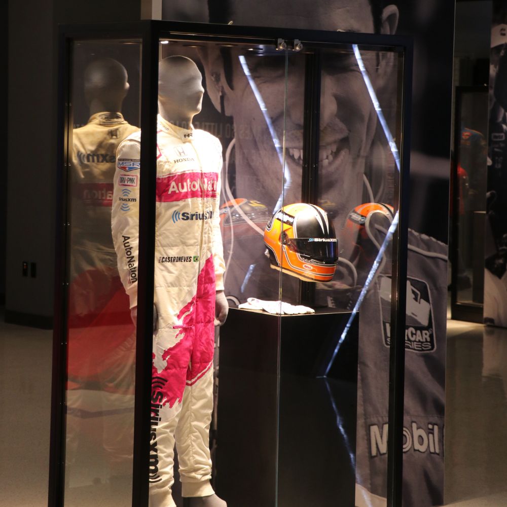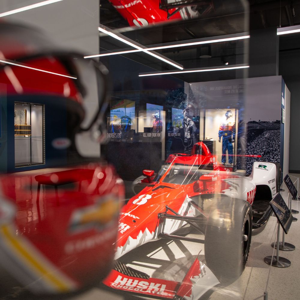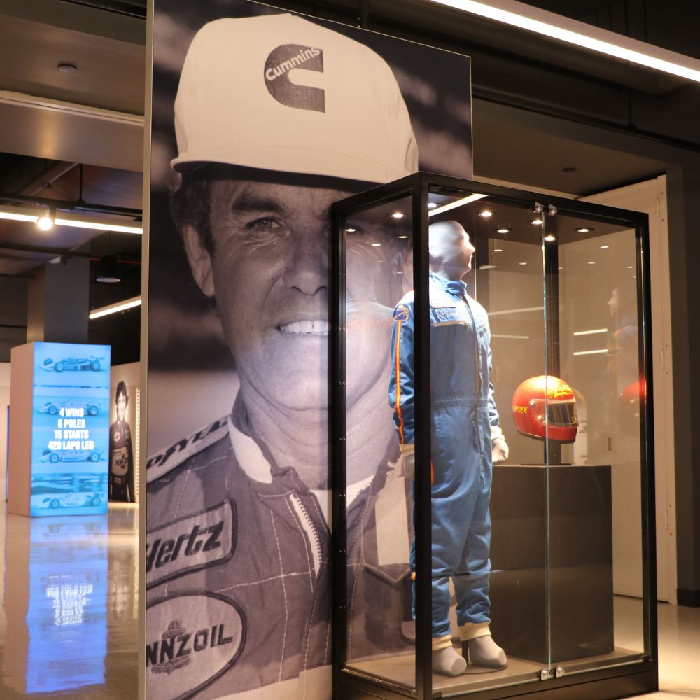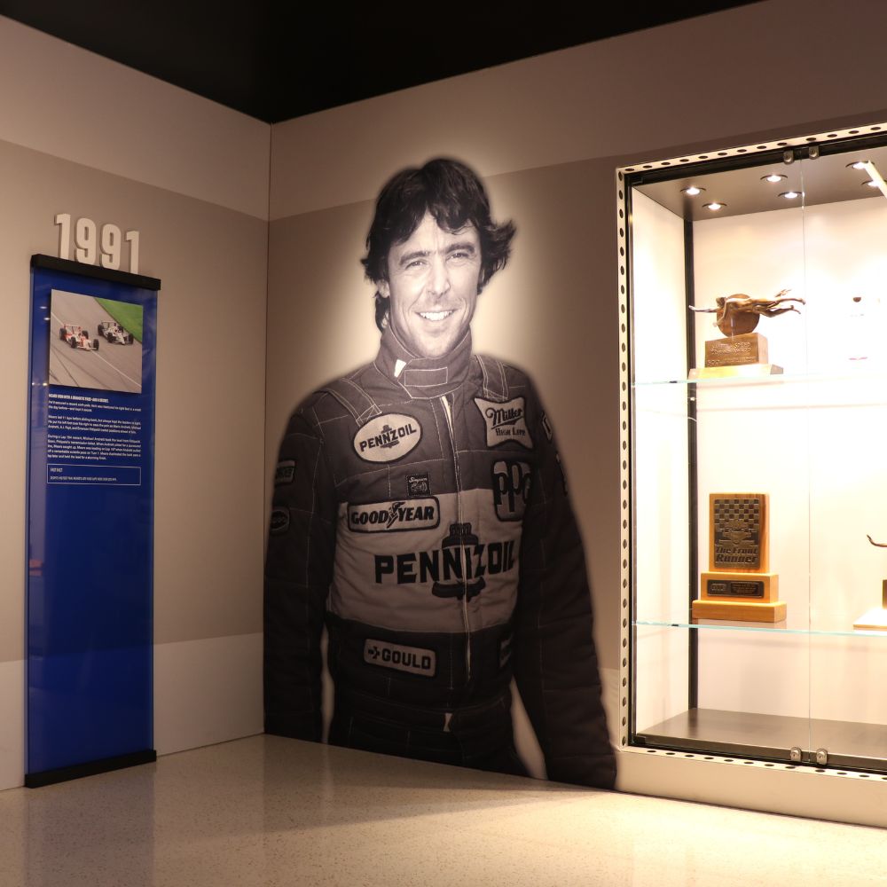 Partnering with Interpretive Planner Mary Seelhorst, the exhibit profiles legendary drivers A.J. Foyt, Al Unser Sr., Rick Mears, and Helio Castroneves. The space features an array of vibrant fabric graphics, curated digital engagements, immersive photo opportunities, and a variety of artifacts, including four race-winning cars.
