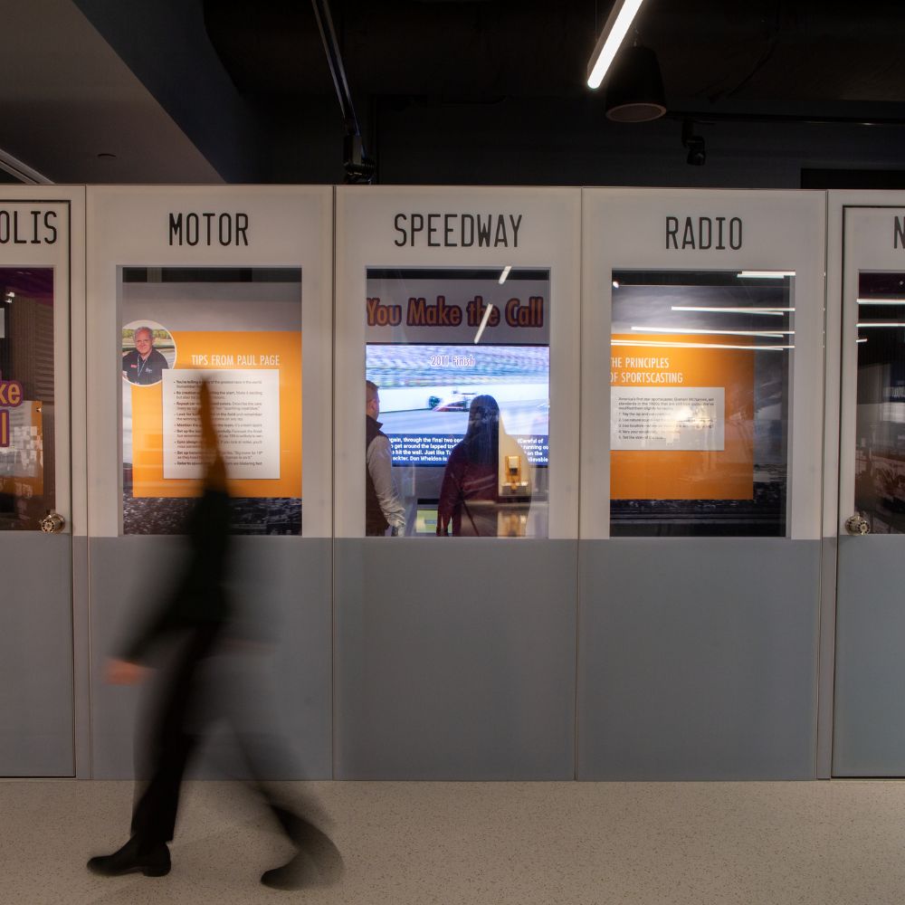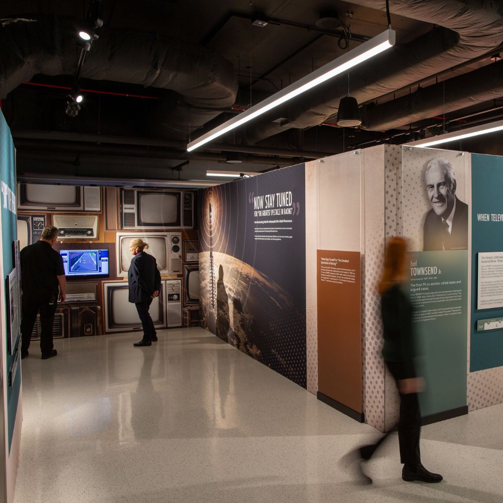 Building on the earlier success of the first rotating exhibition, Exhibit Concepts was again trusted to update the space with a renewed focus. Now Stay Tuned is dedicated to showcasing the efforts that go into broadcasting “The Greatest Spectacle in Racing” every May.