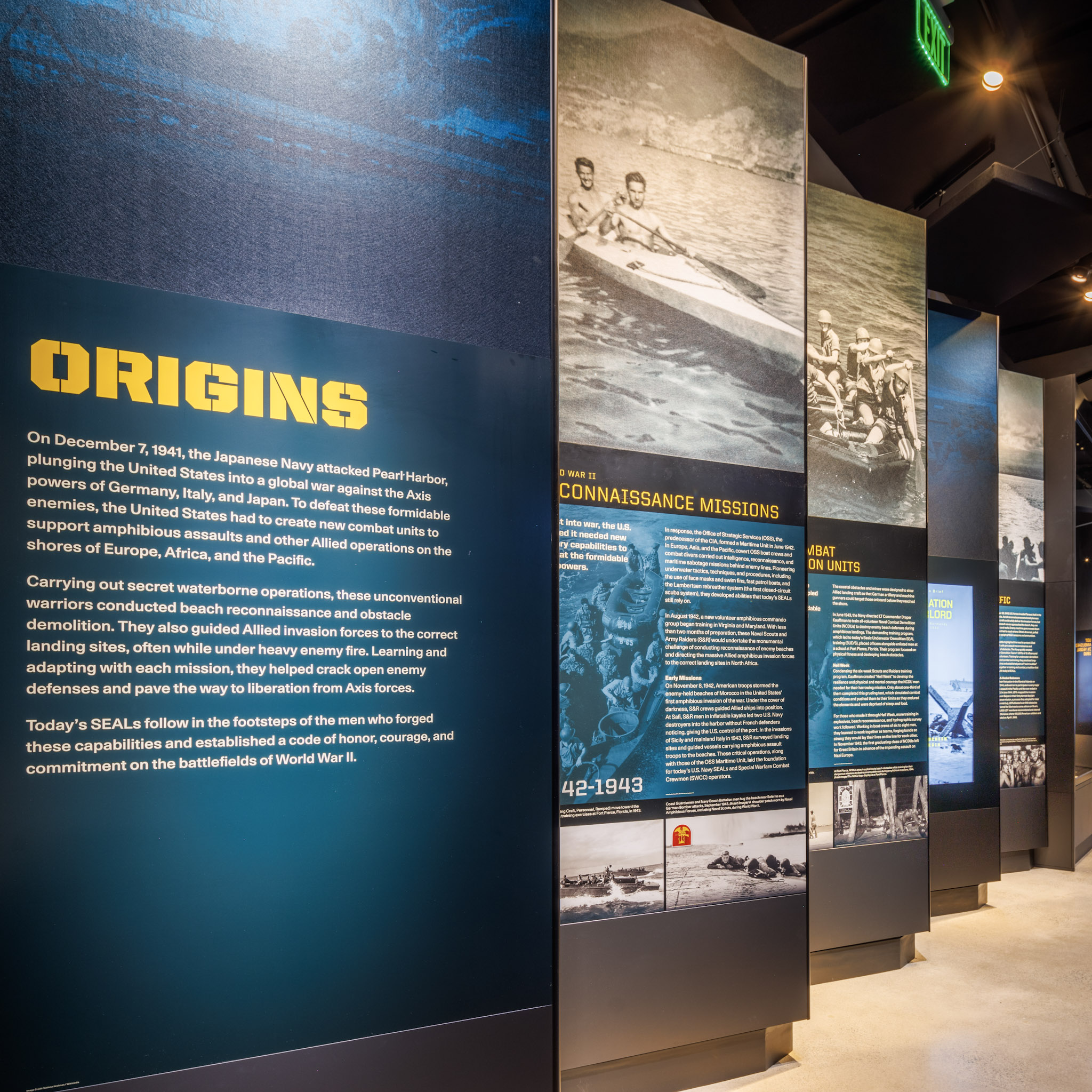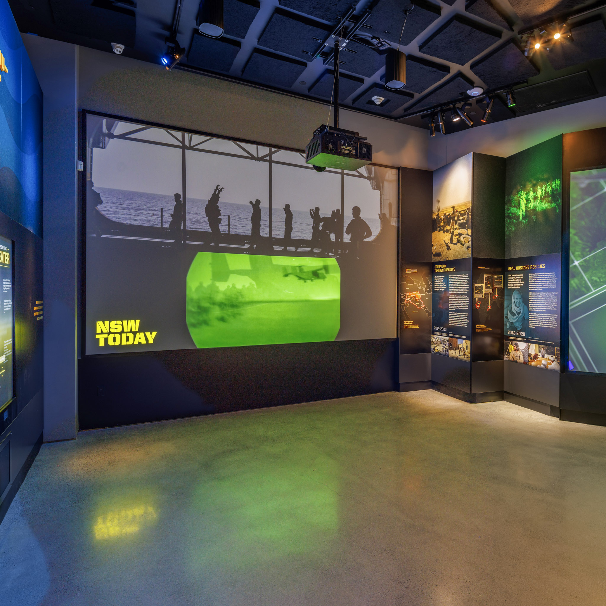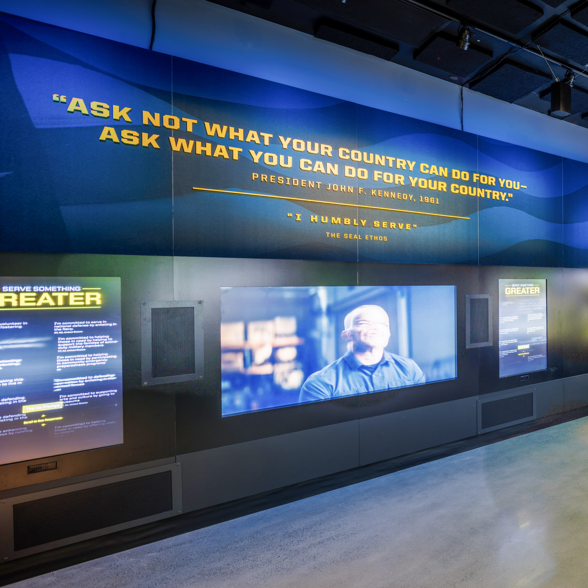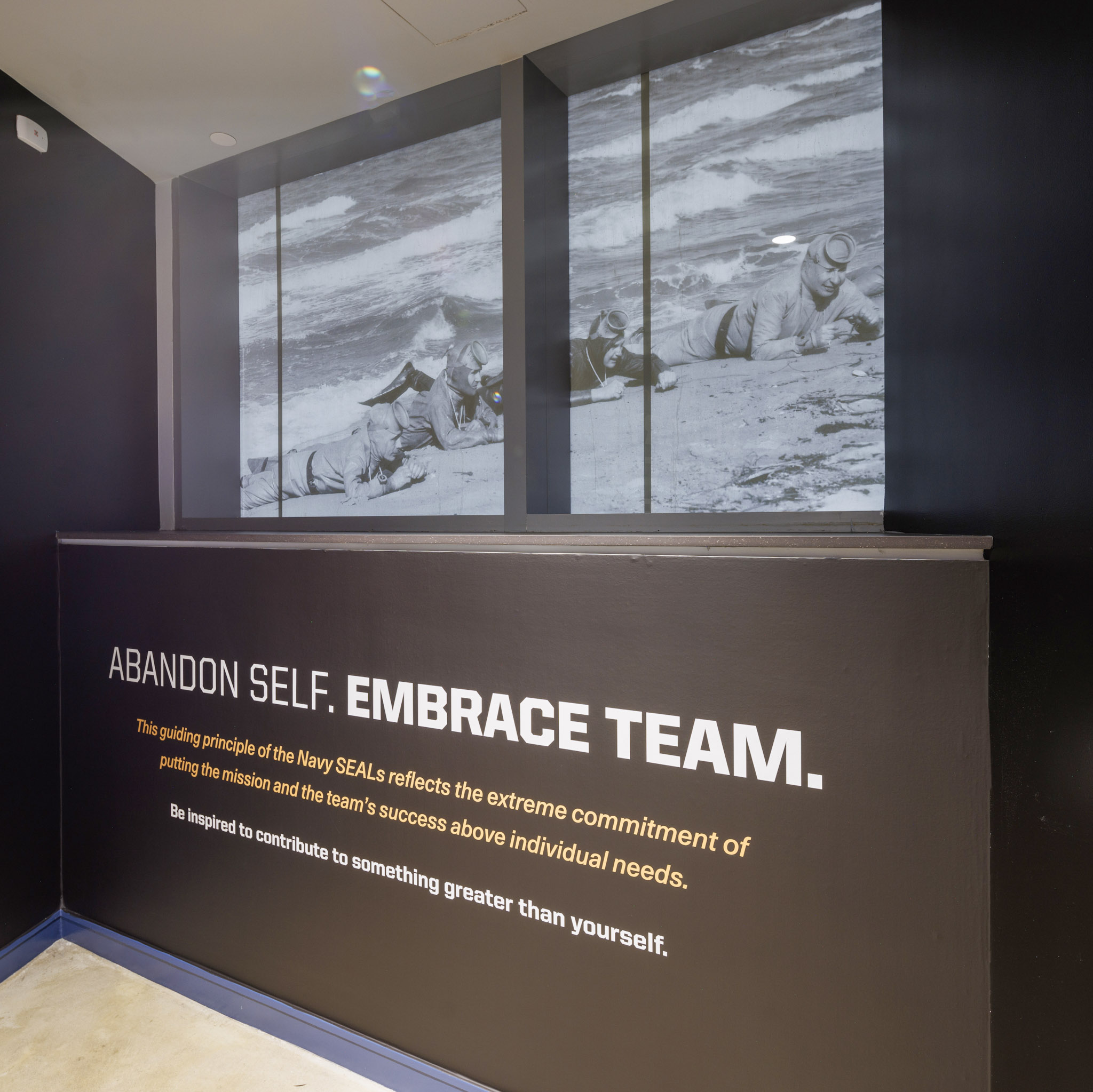 Just as within the SEALs, collaboration was key throughout the project. Exhibit Concepts partnered with BBI Engineering to integrate A/V elements, Eos Lightmedia was trusted to deliver impactful lighting, ID Studios served as the Architect of Record, and Burger Construction provided general contractor services.